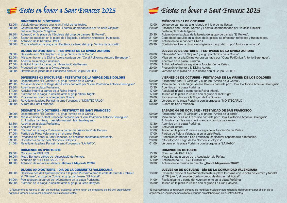 Del 1 al 9 de octubre, Polop vivirá días de tradición, música, pólvora y convivencia.